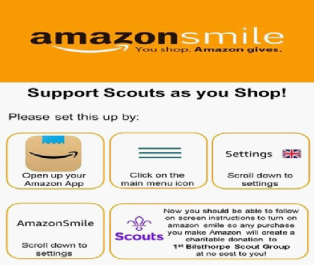 Amazon are also supporting local communities with Amazon Smile, this is where you set a charity to support as your amazon smile. We want you to select us: 1st Bilsthorpe Scout Group